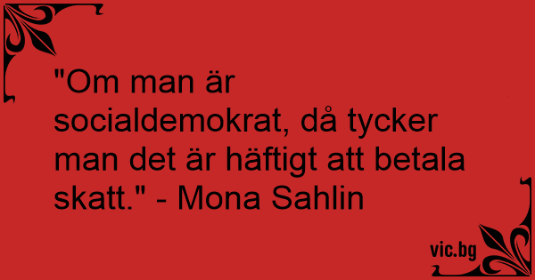 "Om man är socialdemokrat, då tycker man det är häftigt att betala skatt." - Моnа Sahlin