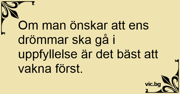 Om man önskar att ens drömmar ska gå i uppfyllelse är det bäst att vakna först.