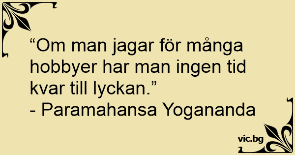 “Om man jagar för många hobbyer har man ingen tid kvar till lyckan.”