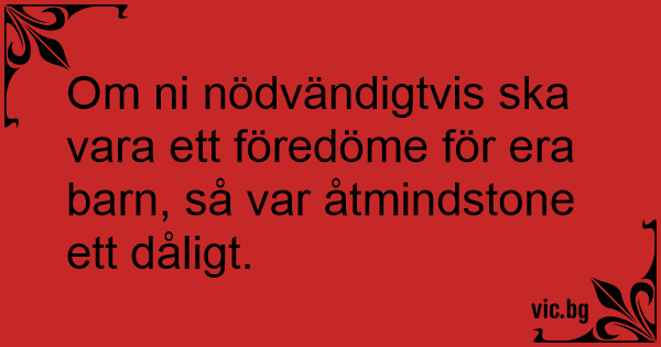 Om ni nödvändigtvis ska vara ett föredöme för era barn, så var åtmindstone ett dåligt.