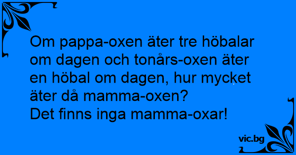 Om pappa-oxen äter tre höbalar om dagen och tonårs-oxen äter en höbal om dagen, hur mycket äter då mamma-oxen?
