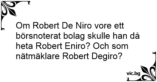 Om Robert De Niro vore ett börsnoterat bolag skulle han då heta Robert Eniro? Och som nätmäklare Robert Degiro?