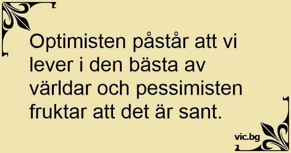Optimisten påstår att vi...