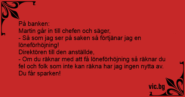 - Om du räknar med att få löneförhöjning så räknar du fel och folk som inte kan räkna har jag ingen nytta av. Du får sparken!