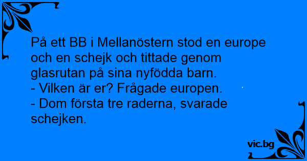 På ett BB i Mellanöstern stod en europe och en schejk och tittade genom glasrutan på sina nyfödda barn.
