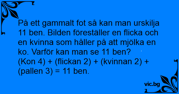 På ett gammalt fot så kan man urskilja 11 ben. Bilden föreställer en flicka och en kvinna som håller på att mjölka en ko. Varför kan man se 11 ben?