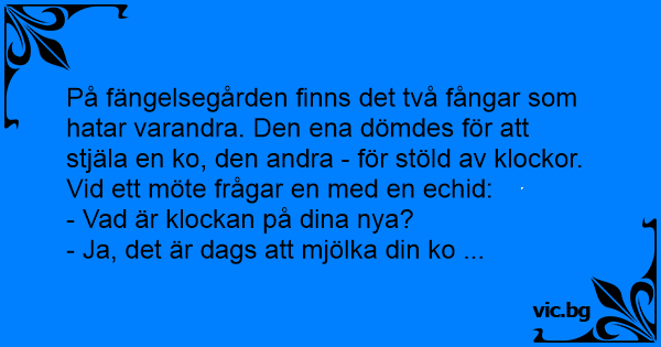 På fängelsegården finns det två fångar som hatar varandra. Den ena dömdes för att stjäla en ko, den andra - för stöld av klockor. Vid ett möte frågar en med en echid: