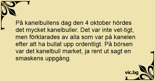 På kanelbullens dag den 4 oktober hördes det mycket kanelbuller. Det var inte vet-tigt, men förklarades av alla som var på kanelen efter att ha bullat upp ordentligt. På börsen var det kanelbull market, ja rent ut sagt en smaskens uppgång.
