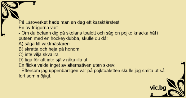 - Om du befann dig på skolans toalett och såg en pojke knacka hål i putsen med en hockeyklubba, skulle du då: