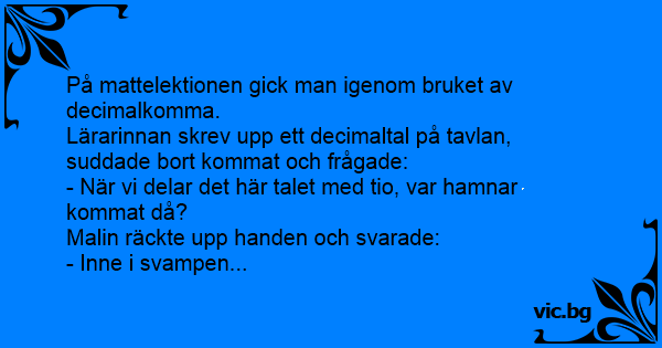 Lärarinnan skrev upp ett decimaltal på tavlan, suddade bort kommat och frågade: