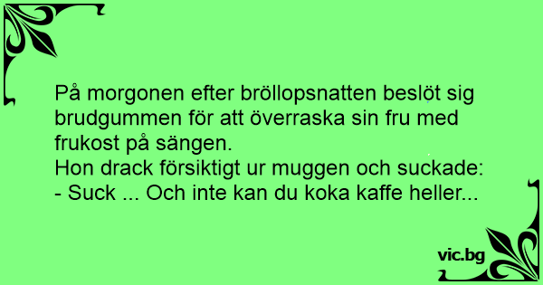 På morgonen efter bröllopsnatten beslöt sig brudgummen för att överraska sin fru med frukost på sängen.