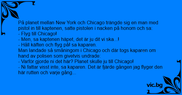 På planet mellan New York och Chicago trängde sig en man med pistol in till kaptenen, satte pistolen i nacken på honom och sa: