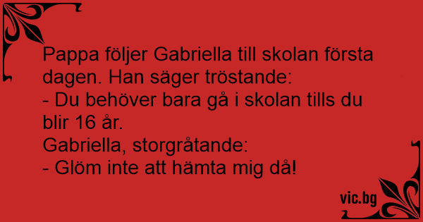 Pappa följer Gabriella till skolan första dagen. Han säger tröstande: