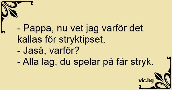 - Pappa, nu vet jag varför det kallas för stryktipset.