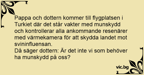 Pappa och dottern kommer till flygplatsen i Turkiet där det står vakter med munskydd och kontrollerar alla ankommande resenärer med värmekamera för att skydda landet mot svininfluensan.
