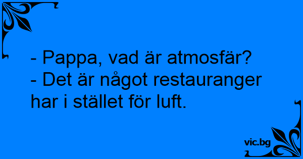 - Pappa, vad är atmosfär? - Det är något restauranger har i stället för luft.