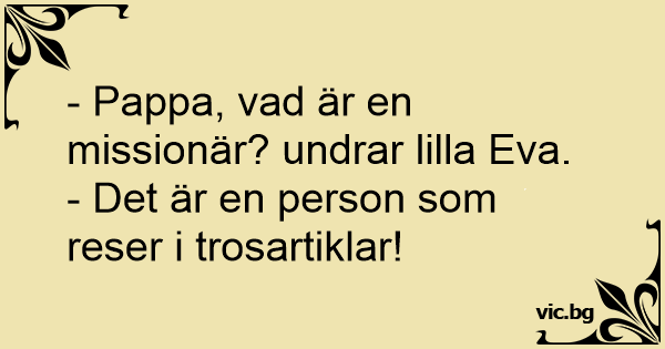 - Pappa, vad är en missionär? undrar lilla Eva.