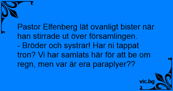 Pastor Elfenberg lät ovanligt bister när han stirrade ut över församlingen.