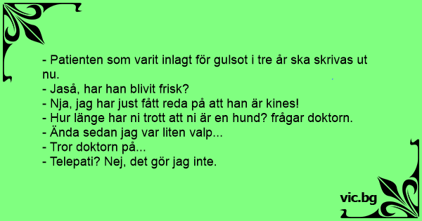 - Hur länge har ni trott att ni är en hund? frågar doktorn.