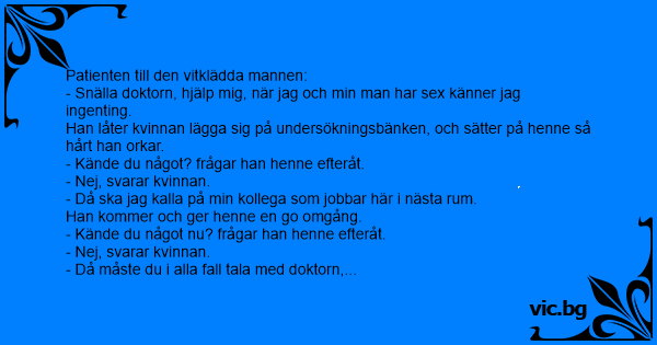 - Snälla doktorn, hjälp mig, när jag och min man har sеx känner jag ingenting.