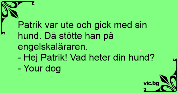 Patrik var ute och gick med sin hund. Då stötte han på engelskaläraren.