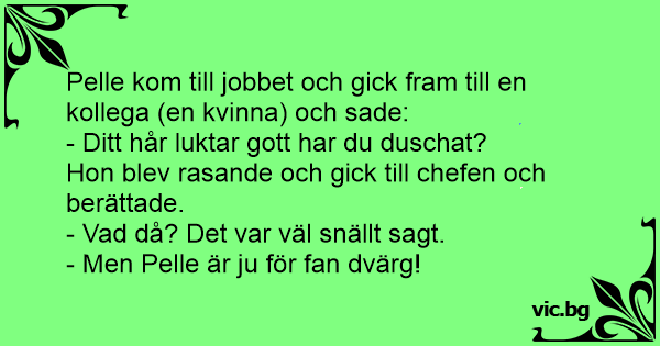 Pelle kom till jobbet och gick fram till en kollega (en kvinna) och sade: