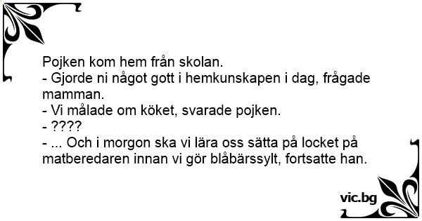 - Gjorde ni något gott i hemkunskapen i dag, frågade mamman.