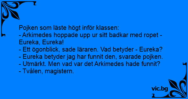 - Eureka betyder jag har funnit den, svarade pojken.