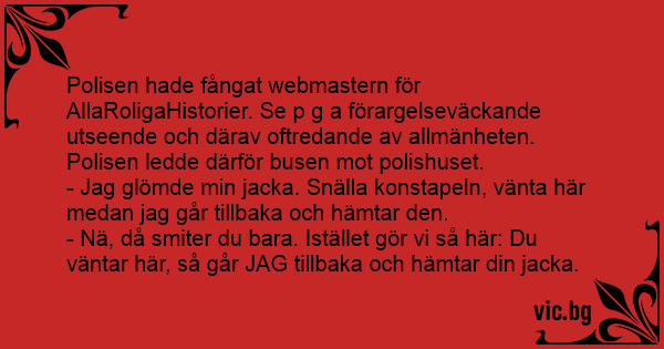 Polisen hade fångat webmastern för vic.bg p g a förargelseväckande utseende och därav oftredande av allmänheten. Polisen ledde därför busen mot polishuset.