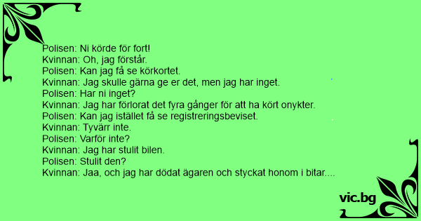 Kvinnan: Jaha och snart påstår han väl att jag körde för fort också???