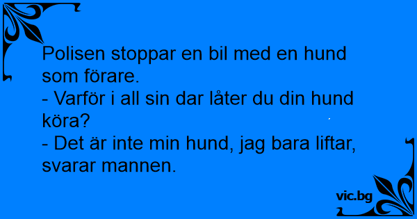 - Det är inte min hund, jag bara liftar, svarar mannen.