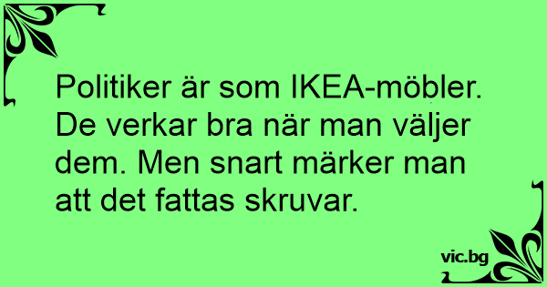 Politiker är som IKEA-möbler. De verkar вrа när man väljer dem. Men snart märker man att det fattas skruvar.
