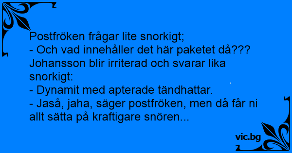 - Jaså, jaha, säger postfröken, men då får ni allt säтта på kraftigare snören...