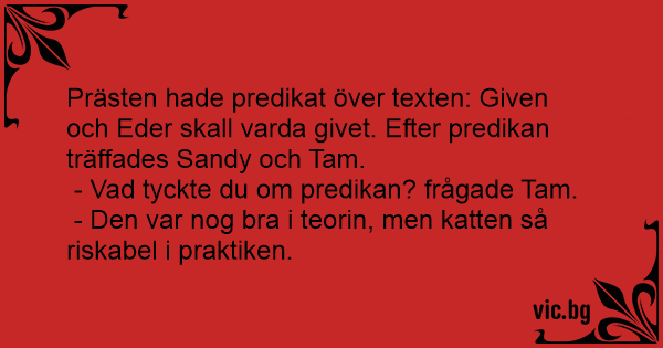 Prästen hade predikat över texten: Given och Eder skall varda givet. Efter predikan träffades Sandy och Tam.