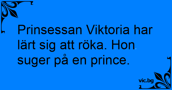Prinsessan Viktoria har lärt sig att röka. Hon suger på en prince.