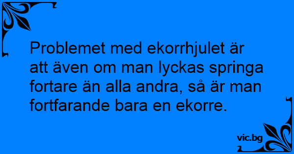 Problemet med ekorrhjulet är att även om man lyckas springa fortare än alla andra, så är man fortfarande bara en ekorre.
