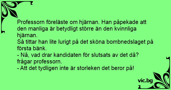 Professorn föreläste om hjärnan. Han påpekade att den manliga är betydligt större än den kvinnliga hjärnan.