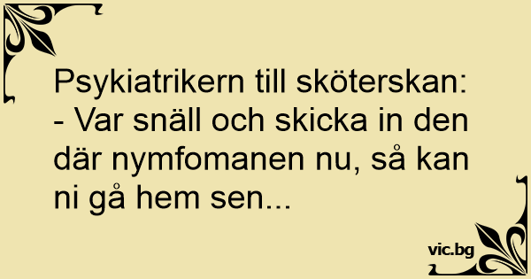 - Var snäll och skicka in den där nymfomanen nu, så kan ni gå hem sen...
