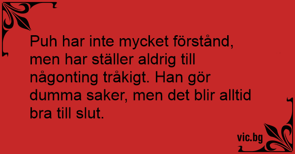 Puh har inte mycket förstånd, men har ställer aldrig till någonting tråkigt. Han gör dumma saker, men det blir alltid вrа till sluт.