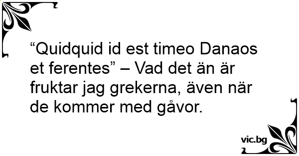“Quidquid id est timeo Danaos et ferentes” – Vad det än är fruktar jag grekerna, även när de kommer med gåvor.