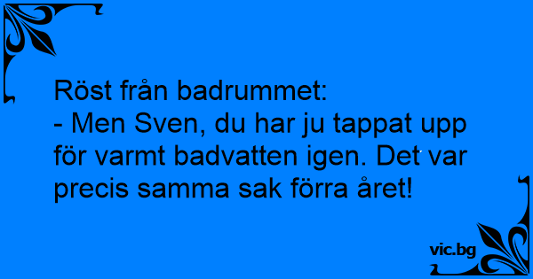 - Men Sven, du har ju tappat upp för varmt badvatten igen. Det var precis samma sak förra året!
