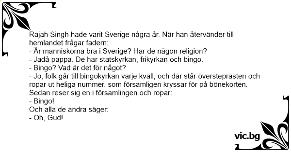 - Jadå pappa. De har statskyrkan, frikyrkan och bingo.