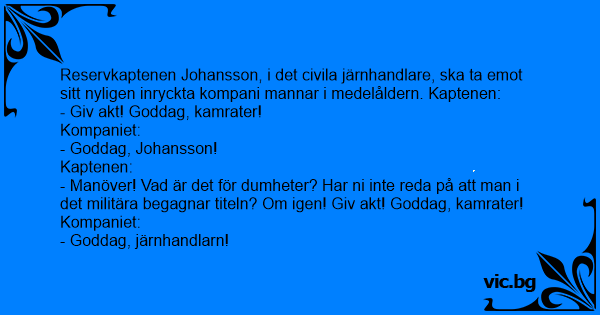 - Manöver! Vad är det för dumheter? Har ni inte reda på att man i det militära begagnar titeln? Om igen! Giv akt! Goddag, kamrater!
