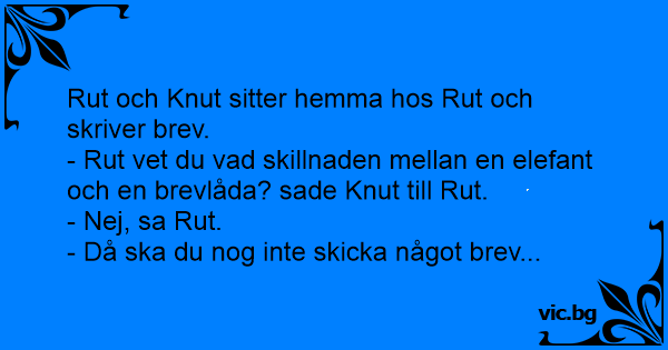 - Rut vet du vad skillnaden mellan en elefant och en brevlåda? sade Knut till Rut.