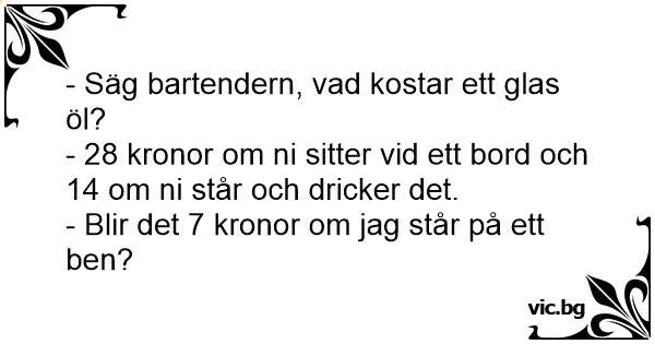 - Säg bartendern, vad kostar ett glas öl?
