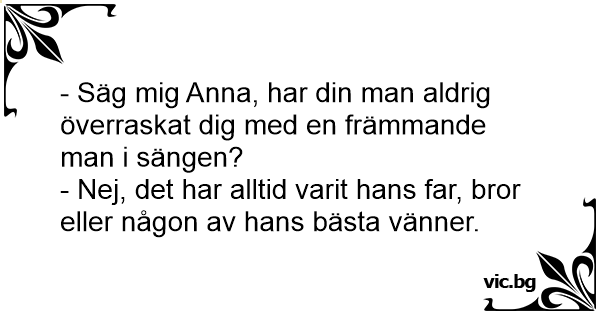 - Säg mig Anna, har din man aldrig överraskat dig med en främmande man i sängen?