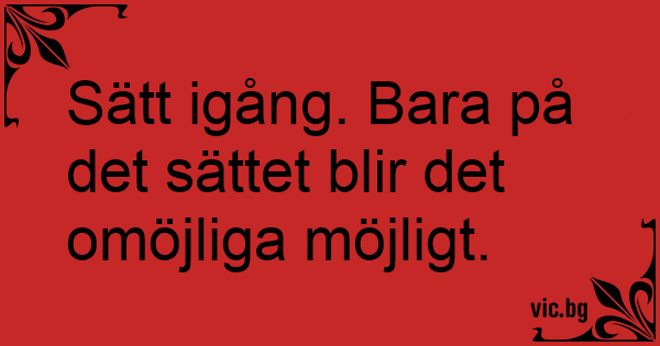 Sätt igång. Bara på det sättet blir det omöjliga möjligt.