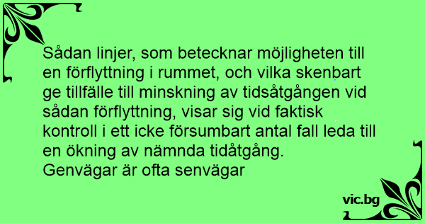 Sådan linjer, som betecknar möjligheten till en förflyttning i rummet, och vilka skenbart ge tillfälle till minskning av tidsåtgången vid sådan förflyttning, visar sig vid faktisk kontroll i ett icke försumbart antal fall leda till en ökning av nämnda tidåtgång.