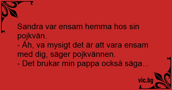 - Åh, va mysigt det är att vara ensam med dig, säger pojkvännen.