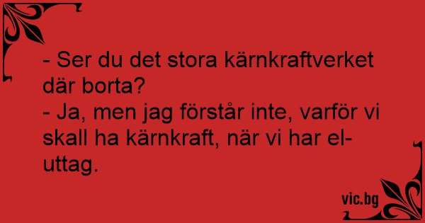- Ja, men jag förstår inte, varför vi skall ha kärnkraft, när vi har el-uttag.